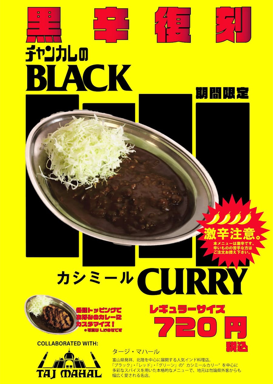 チャンピオンカレー チャンカレ 公式 V Twitter さて 11 の限定メニューを発表します 富山 発インド料理店 タージ マハール さんとのコラボメニューです タージさんの看板メニューのブラックカシミールカレーと弊社ルゥを独自配合でブレンド